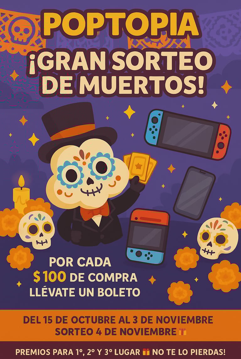La promoción es válida del 15 de octubre al 3 de noviembre de 2025, únicamente en las sucursales oficiales de Poptopia.